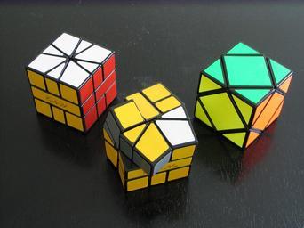 Keywords: Square One and Skewb.JPG en Square One Cube 21 solved and scrambled Skewb cs Hlavolamy Square One Cube 21 složený a lehce rozházený skewb own Oldsoft Sequential move puzzles Square-1