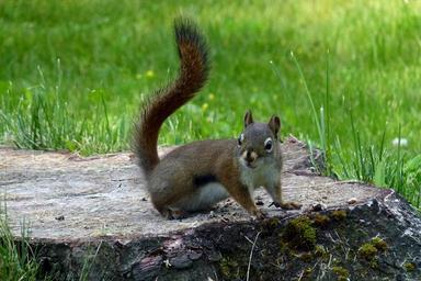 Keywords: squirrel animal nature rodent wildlife mammal wild tree stump stump furry brown grass outdoor outdoors