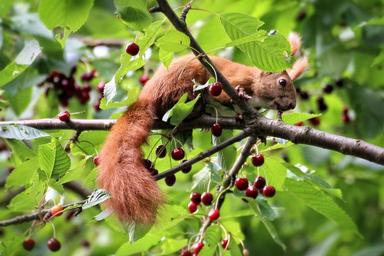 Keywords: squirrel cherries tree sour cherry summer nature