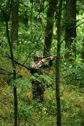 Keywords: Squirrel hunting.jpg en A hunter takes aim on a squirrel in a tree 2014-08-05 14 32 25 U S Fish and Wildlife Service Steve Hillebrand PD-USGov Uploaded with UploadWizard Hunt Hunting Camouflage