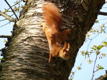 Keywords: squirrel rodent furry brown animal creature climb tree cheeky