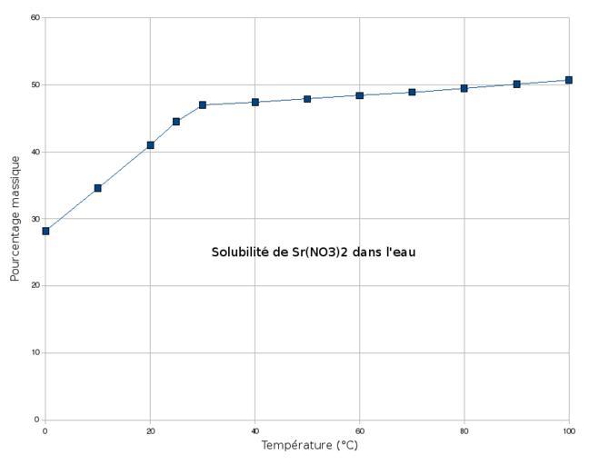 Keywords: Sr(NO3)2 Solubilité dans eau.png fr Solubilité de Sr NO3 2 dans l'eau en fonction de la température Créée par mes soins avec OpenOffice org Calc et The Gimp d'après http //www hbcpnetbase com/ Handbook of Chemistry Physics Epop Sr NO3 2 Solubilité dans eau-zh png Strontium nitrate |