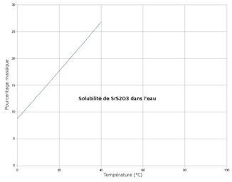 | Keywords: SrS2O3 Solubilite dans eau.png fr Solubilité de thiosulfate de strontium dans l'eau en fonction de la température Créée par mes soins avec OpenOffice org Calc et The Gimp d'après http //www hbcpnetbase com/ Handbook of Chemistry Physics Epop Thiosulfates |