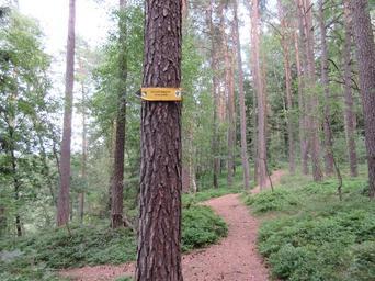 Keywords: SSM 3.JPG cs Ukazatel k vyhlídce nad Sloupem own Zákupák 2015-07-24 Sloupské skalní město Hiking and footpath fingerposts in Sloup v Čechách