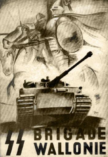 Keywords: SSWallonie.jpeg Recruiting poster for SS Wallonia PD-Art Nazi symbol SS Propaganda Knights in propaganda Tanks in propaganda 28th SS Division Wallonien Siegrune World War II posters from Belgium Artworks missing infobox template