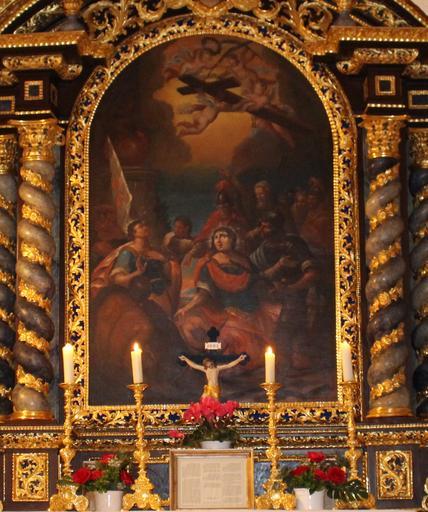 | Keywords: St Achatiusmatyrium Altarbild Oberulrain Stadt Neustadt an der Donau Lkr Kelheim Niederbayern.JPG de Das Hochaltargemälde der Kirche St Achatius in Oberulrain Neustadt Donau Landkreis Kelheim Niederbayern zeigt das Martyrium des Hl Achatius own Dede2 2014-12-05 Oberulrain Johann Gebhard Cc-zero |