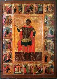 | Keywords: St.George (2nd half 16 century).jpg Икона св Гео гия Победоносца 2-я половина 16 века Де ево паволока левкас яичная темпе а Калужский областной художественый музей Icon of St George Second half of 16th century Egg tempera on wood Kaluga Art Museum Kaluga Art Museum http //artmuseum kaluga ru/expo/expo_drev/expo_drev_jiv/ Second half of 16th century anonymous PD-Old-100 PD-old-100 Icons of Saint George Vita icon 16th-century icons Icons of Russia Art of the Russian Orthodox Church Paintings in the Regional Art Museum Kaluga |