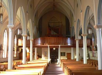 | Keywords: St. Helena Immaculate Conception interior 2.JPG St Helena Nebraska The Gothic Revival church was built in 1897 With the 1919 rectory it is listed in the National Register of Historic Places The photo was taken near the altar at the south end of the church facing northward toward the front entrance own Ammodramus 2010-11-01 Cc-zero Pictures by Ammodramus Taken with Panasonic Lumix DMC-FZ20 Immaculate Conception church St Helena Nebraska | ||||