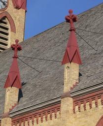 | Keywords: St. Helena Immaculate Conception finials.JPG St Helena Nebraska The Gothic Revival church was built in 1897 With the 1919 rectory it is listed in the National Register of Historic Places own Ammodramus 2010-11-01 Cc-zero Pictures by Ammodramus Taken with Panasonic Lumix DMC-FZ20 Immaculate Conception church St Helena Nebraska Roof finials |