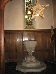 | Keywords: indoor stjameschurchnewcastle.wordpress.com/ The church was designed by John Dobson and built on land donated by John Buddle. Several coalmines in the neighbourhood led to a growing number of industries along the riverside, but at the time, Benwell was a largely rural area of farms, mansions and private estates with a resident population of about a thousand. It is one of the few heritage buildings that has managed to survive the many waves of clearance and 'regeneration' that the local council has inflicted on the area. 1830 - plans launched 1831 - foundation stone laid 1832 - consecration of church and churchyard 1833 - first celebration of Holy Communion 1836 - first resident minister 1843 - separate parish of Benwell created with Rev W Maughan as first incumbent 1858 - churchyard extended 1864 - church extended with addition of chancel and south aisle, designed by Dobson 1879 - organ chamber and vestry added 1884/5 - new baptistry and tower with spire and clock, choir vestry added 1899/1900 - further extensions to churchyard 1903 - north aisle added 1910 - chapel added to north aisle 1980 - conversion of south aisle to church hall THE NAVE The original Chapel of Ease, built in 1831-2 and designed by John Dobson. Stained glass windows include some by William Wailes, and a stone carving by Eric Gill can also be seen. CHANCEL Added to the original building in 1864 by creating an arch out of an outside wall. The east wall features a set of three stained glass windows by William Wailes. The alter was made in 1932 for the church's centenary service, by the firm established by Ralph Hedley, who was responsible for much of the woodcarving in the church. VESTRY/LADY CHAPEL Added in 1879. BAPTISTRY AND TOWER The Baptistry was created in 1894, along with a spire with a clock and spiral staircase being added to the tower. The church bells were made by Charles Carr of Smethwick; the tenor bell weighs 15cwt (1680 lbs, 762 kg). stjameschurchnewcastle.wordpress.com/ The church was designed by John Dobson and built on land donated by John Buddle. Several coalmines in the neighbourhood led to a growing number of industries along the riverside, but at the time, Benwell was a largely rural area of farms, mansions and private estates with a resident population of about a thousand. It is one of the few heritage buildings that has managed to survive the many waves of clearance and 'regeneration' that the local council has inflicted on the area. 1830 - plans launched 1831 - foundation stone laid 1832 - consecration of church and churchyard 1833 - first celebration of Holy Communion 1836 - first resident minister 1843 - separate parish of Benwell created with Rev W Maughan as first incumbent 1858 - churchyard extended 1864 - church extended with addition of chancel and south aisle, designed by Dobson 1879 - organ chamber and vestry added 1884/5 - new baptistry and tower with spire and clock, choir vestry added 1899/1900 - further extensions to churchyard 1903 - north aisle added 1910 - chapel added to north aisle 1980 - conversion of south aisle to church hall THE NAVE The original Chapel of Ease, built in 1831-2 and designed by John Dobson. Stained glass windows include some by William Wailes, and a stone carving by Eric Gill can also be seen. CHANCEL Added to the original building in 1864 by creating an arch out of an outside wall. The east wall features a set of three stained glass windows by William Wailes. The alter was made in 1932 for the church's centenary service, by the firm established by Ralph Hedley, who was responsible for much of the woodcarving in the church. VESTRY/LADY CHAPEL Added in 1879. BAPTISTRY AND TOWER The Baptistry was created in 1894, along with a spire with a clock and spiral staircase being added to the tower. The church bells were made by Charles Carr of Smethwick; the tenor bell weighs 15cwt (1680 lbs, 762 kg). |