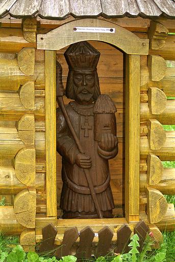 Keywords: st john the baptist ambrose patron of beekeeping guardian sculpture wooden folk art beekeeping village kamianna pasieka ule bee the wooden figure