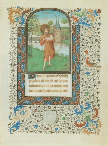 Keywords: 'St. John the Baptist with the Lamb of Christ', gold leaf and tempera on vellum page from a book of hours.JPG Artwork Creator Anonymous ca 1455 tooled gold tempera vellum cm Institution Honolulu Academy of Arts accession number object history credit line page from a book of hours France Honolulu Academy of Arts Books of Hours 15th-century paintings of John the Baptist Agnus Dei in painting Renaissance paintings in the Honolulu Museum of Art Illuminated manuscripts in the Honolulu Museum of Art John the Baptist with lamb PD-USGov |