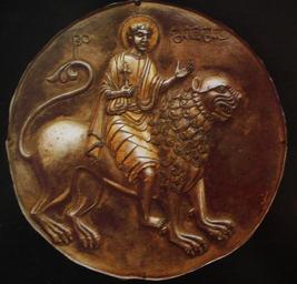 | Keywords: St Mamas tondo, Georgia.JPG en Tondo with the figure of Saint Mamas from Gelati Monastery XIV-XVth c c The State Museum of Fine Arts of Georgia The book of prof Roin Metreveli Georgia Library of Congress Catalog number 95-69036 Unknown artist of XIV-XVth c c XIV-XVth c c PD-old Art of Georgia Asomtavruli icons |