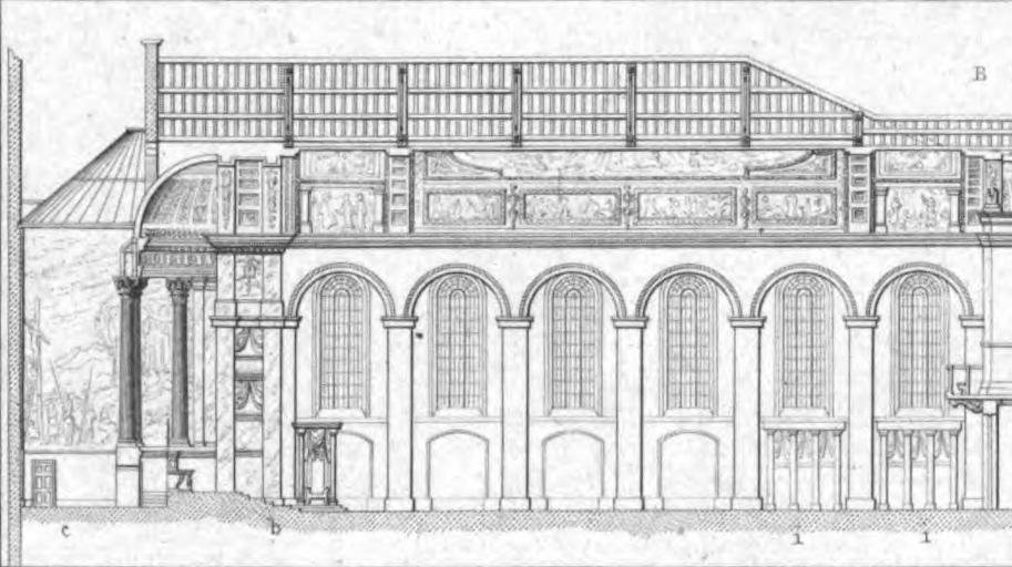 | Keywords: St Mary Moorfields - Longitudinal Section.jpg en A Ground Plan a Vestibule or principal entrance under a recessed portico b Sanctuary with altar c c Wall behind the altar with painting on its surface e and f Ante-room and sacristy g g Staircases to the organ-gallery c h Subscription room i i Confessionals a Lateral or outer vestibule with an ante-room in which is a staircase to private seats g Communication to the house of the resident clergy B Longitudinal section of the north side of the chapel; the altar part or sancuary of which is shown to an enlarged scale at C St_Mary_Moorfields jpg 2011-11-18 23 58 UTC St_Mary_Moorfields jpg John Le Keux 1783-1846 derivative work Catfisheye <span class signature-talk >talk</span> St_Mary_Moorfields jpg PD-old Original upload log This image is a derivative work of the following images File St_Mary_Moorfields jpg licensed with PD-old 2011-11-16T22 59 56Z Catfisheye 1580x2176 726121 Bytes <nowiki> en A Ground Plan a Vestibule or principal entrance under a recessed portico b Sanctuary with altar c c Wall behind the altar with painitng on its surface e and f An</nowiki> Uploaded with derivativeFX ImageNote 1 788 435 212 99 1047 587 2 Confessionals ImageNoteEnd 1 ImageNote 2 175 511 220 56 1047 587 2 Sanctuary with altar c ImageNoteEnd 2 ImageNote 3 26 237 198 230 1047 587 2 Wall behind the altar with painting on its surface Actually it was a fresco showing Mount Calvary executed by Agostino Aglio ImageNoteEnd 3 Saint Mary Moorfields first building John Le Keux |