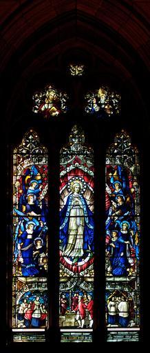 Keywords: St. Mary's Cathedral - Sydney - Stained Glass - 021.jpg en A stained glass window inside St Mary's Cathedral in Sydney Australia Own Jason7825 2009-05-02 I took it Interior of St Mary's Cathedral Sydney
