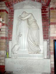 | Keywords: St Michael Church and All Angels, Lyndhurst - memorial.JPG Lyndhurst Hampshire Designed and carved by John Flaxman The inscription reads To the memory of Sir Charles Philip Jennings Bar of Foxlease in this parish and of Duddlestone in the county of Salop Endowed with every dignified and amiable quality that can make private life respected and beloved This monument is erected by his afflicted sister who feels too deeply the worth of the brother she has lost the last of his family to speak that worth as it deserves yet cannot deny herself the melancholy consolation of inscribing this stone with his name <br/><br/>According to The Gentleman's Magazine 1789 Volume 58 Part 1 page 372 Sir Charles Philip Jennings died at Knightsbridge 22 April 1788 He had recently succeeded his father Sir Philip Jennings-Clerke 1st Baronet who died in January of that year Having no heir the baronetcy died with Sir Charles The sister and last of his family who erected this memorial may have been Miss Frances Jennings who according to The Gentleman's Magazine 1821 Volume 129 page 476 was the dau of the late Sir Philip Jennings Clerke and who died in Berlin 12 April 1821 2011-02-27 15 39 20 own Pasicles cc-zero Uploaded with UploadWizard John Flaxman Church monuments in Hampshire St Michael and All Angels Lyndhurst interior |