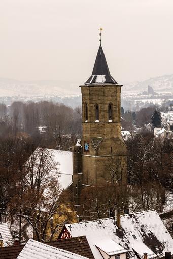 Keywords: st michael's church waiblingen winter snow wintry cold church architecture
