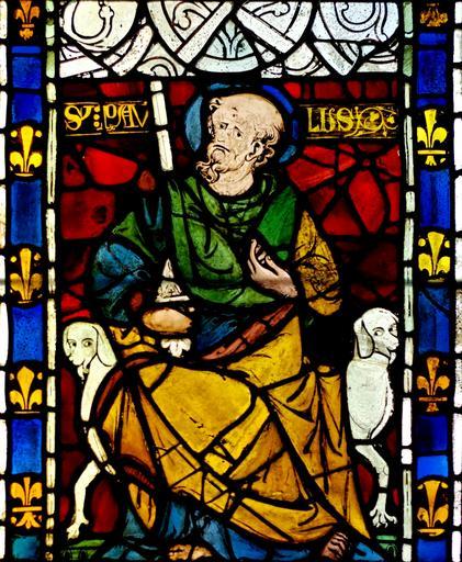 | Keywords: St Paul Rouen MNMA Cl22734.jpg St Paul Stained glass white and coloured glass grisaille painting lead Normandy ca 1260 From the chapel of the royal castle of Rouen Saint Paul Vitrail verre blanc et verre coloré grisaille et plomb Normadie vers 1260 Provenance chapelle du château royal de Rouen H 70 cm 27 ½ in W 60 cm 23 ½ in Museum Musée national du Moyen Âge Room 6 object history credit line Former Gorge collection; purchase 1956 accession number Cl 22728 Jastrow 2006 other versions PD-old 1260s Stained glass in the Musée national du Moyen Âge Saint Paul on stained glass windows Art of Normandie |