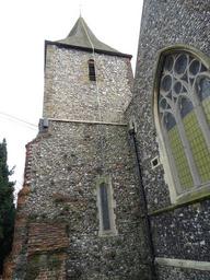 | Keywords: 85/9/104 MAIN ROAD 25-AUG-54 ST PAUL'S CRAY CHURCH OF ST PAULINUS GV II* The nave, N chapel and western part of the chancel are C11. S aisle added late C12 or early C13, and nave N side preserves evidence for a former chapel of the early C12 and a former N aisle of c1200. W tower late C12 or early C13. Some C15 windows, and roof partially of this date. Top of tower is C17. Extensively restored in 1859-61, and the S chapel added in 1863. MATERIALS Flint rubble with stone and brick dressings. Shingled spire, tiled roofs. PLAN Nave with S aisle and evidence for a former N aisle, chancel with N and S chapels, W tower EXTERIOR Externally, the church is notable for the clearly visible evidence for its development. In the N nave wall is the remains of a small C11 window, cut by the former N arcade, with the head turned in brick. Blocked, pointed arches, in the N nave wall are evidence for the former two-bay N aisle, probably of c1200. C15 windows of two lights with square heads and two trefoiled lights are inset into the blocking of the arches, and there is a small lancet to the E of the arcade. An early C12 blocked round arch in the W wall of the N chapel is the remains of a former aisle or porticus chapel that was subsequently incorporated into the N aisle and then demolished with it. The NE quoin of the N chapel is made of Roman tile, and the E gable has irregular stone banding and brick along the gable edges. The NW corner of the nave has a brick quoin, probably late C17 and contemporary with those on the tower. The S aisle W window has late C13-style Geometric tracery, heavily or entirely renewed in the C19. The S windows, also mostly C19, are C15 in style with two lights in square heads. The N chancel chapel has a C19 plate tracery window of two lights with a quatrefoil in the head. The C19 S chancel chapel has Early English-style windows. The chancel E window is C16 in style and has a very depressed head with three uncusped lights. Two stage W tower with a shingled broach spire, the lower part c1200, the upper part rebuilt or restored in the late C17. C17 brick buttresses on the lower stage and C17 quoins on the upper stage, with a stone string course separating the stages. The W door has a moulded arch with dogtooth ornament on nook shafts with foliate capitals. Above the W door is a window of uncertain date with a C19 plate tracery insert, and there are two small, round openings in the lower part of the second stage. There are narrow lancets in the N and S walls of the lower stage, and late C17 round headed windows with brick dressings in the upper stage. INTERIOR The interior is notable for the three-bay S arcade, which is in two distinct parts, both with round piers and pointed arches. The eastern bay is late C12 and has a flattened roll on the soffit of the arch and lively capitals with acanthus leaves and carved heads. The western two bays have a chamfer on the inner arch moulding and moulded capitals to the pier and W respond. The S chapel was added in 1863, and the arch between the aisle and the S chapel and from the S chapel to the chancel have C19 Early English-style foliate capitals on polygonal responds; the Early English style arch into the N chapel is similar. The two bay former N arcade, still visible internally, was added c1200 and was similar to the western bays of the S arcade. It was set in the western part of the nave wall, presumably to accommodate the lost or covered over opening to the former N chapel. The head of a blocked C11 window is visible above the former arcade at the E end, and the narrow rood loft door opens internally above the E end of the S arcade. There is no chancel arch. The chancel S windows have hood moulds, and the remains of a triplet of lancets are visible in the E wall. The tower arch is also c1200; above it is a two-light C15 style opening. The nave roof was damaged in a fire in 1968, but retains some late-medieval timber. PRINCIPAL FIXTURES There is a C13 coffin lid with a foliated cross in the S chapel, and one late C19 monument. There are no other historic fittings of note remaining in the church. HISTORY The dedication to St Paulinus, a C7 bishop of Rochester, is rare. A church is mentioned in the Doomsday book of 1086, and the present structure was built in the C11. In its original form it appears to have comprised a nave and short chancel with a N porticus chapel flanking the chancel. In the early C12 a N nave chapel was added to the W end of the N chancel porticus, the arch into which is still visible externally. The eastern bay of the S aisle was added in the late C12 and a few years later c1200 the remaining two bays of the S aisle were added. A two bay N aisle which incorporated or continued the N nave chapel was added at this time, and the W tower is also late C12 or early C13. The chancel was extended eastwards in the C13. The chancel arch was removed at an unknown, presumably medieval date, and the aisle windows were redone in the late C15; probably also at this time the S aisle was widened. The top of the tower was remodelled and buttresses added in the C17, and perhaps also at this time the N aisle was demolished, the arches blocked, and the former aisle windows reset in the blocking. The church was restored in 1859-61, and the S chapel was added in 1863. There was further work after a fire in 1968, and a C13 stiff-leaf capital is said to have been found during the restoration. The church became redundant in the late 1970s and has been stripped of its furnishings. The former font, a polygonal example of the C15, is now in St Martin, Chelsfield (Bromley, GL), and the good C19 lectern with a pelican in her piety is in St Mary, St Mary Cray (Bromley, GL). 85/9/104 MAIN ROAD 25-AUG-54 ST PAUL'S CRAY CHURCH OF ST PAULINUS GV II* The nave, N chapel and western part of the chancel are C11. S aisle added late C12 or early C13, and nave N side preserves evidence for a former chapel of the early C12 and a former N aisle of c1