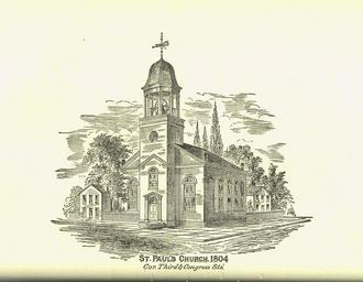 | Keywords: St Pauls Old.tif TroyNY Engraving of the original St Paul's Episcopal Church in Troy New York United States This building was raized in the 19th century and replaced by the current building This building was located at the corner of Third and Congress Streets The current building which was added to the National Register of Historic Places in 1979 is located at the corner of Third and State Streets cite book History of the city of Troy from the Expulsion of the Mohegan Indians to the Present Centennial Year of Independence of the United States of America 1876 Weise Arthur James William H Young 1876 Troy New York 12930415 72 <br> Scan courtesy of http //rchsonline org/ Rensselaer County Historical Society 1876 See Source See restored version File St Pauls Old Downsampled png PD-old 1804 in New York St Paul's Episcopal Church Troy New York Engraved illustrations in History of the City of Troy 1876 Engravings of churches |