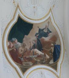 | Keywords: St Peter Fresko Seitenkapelle Benedikt als Patron der Sterbenden.jpg Pfarrkirche St Peter ehem Klosterkirche St Peter auf dem Schwarzwald <br />Fresken von Franz Joseph Spiegler 1727 <br /> restauriert teilweise verändert und um Schriftzüge ergänzt 1873/74 <br /> Hl Benedikt als Patron der Sterbenden own 2008-03 Painting Franz Joseph Spiegler / Photo Andreas Praefcke Creator Franz Joseph Spiegler Own work all rights released Public domain Baroque frescos in St Peter Schwarzwald Frescos of Benedict of Nursia Dying in art Death-bed visions Franz Joseph Spiegler |