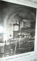 | Keywords: St Ricarius Aberford West Yorks (20).JPG Old photograph of St Ricarius Church Aberford West Yorkshire England Originally a medieval church of which only the tower remains The nave was mostly rebuilt in 1862 to a design by Anthony Salvin but it includes an 1830 east wall Local antiquarians wanted the old nave repaired not replaced The four gentlemen here with hats off in the old medieval nave may be those objectors Note the medieval Romanesque arch box pews two-decker pulpit gallery and organ There is another reproduction of this set of 1861-62 photos http //crsbi2-images cch kcl ac uk/iip/iipsrv fcgi FIF 7/75fd36b5-7155-4b3a-a095-90351cbacca6 jp2 RST QLT 100 CVT JPEG here Photo of print in church 1861 unknown St Ricarius Aberford archive images PD-old-70-1923 Romanesque arches |