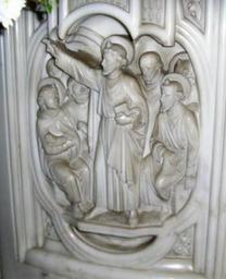 | Keywords: St Stephens Bournemouth Pulpit 4.JPG en Carving on the marble pulpit of St Stephen's Church in Bournemouth Hampshire The work of Nathaniel Hitch The carvings represent three scenes from the New Testament In the central panel Jesus is seen preaching the sermon on the mount On each side we have St Peter preaching on the first Whitsunday Pentecost and St Paul preaching in Athens own Weglinde Gordon Lawson Cc-zero Sculptures by Nathaniel Hitch St Stephen's Church Bournemouth Pulpits in Dorset |