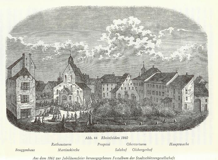 | Keywords: Stadtansicht Rheinfelden (001).jpg  Stadtansicht auf die St Martinskirche und Hauptwache in Rheinfelden AG um 1861 mit Betextung Buch Geschichte der Stadt Rheinfelden 1861 Author Image Stadtansicht_Rheinfelden_ 002 jpg PD-old Historical images of Rheinfelden AG |