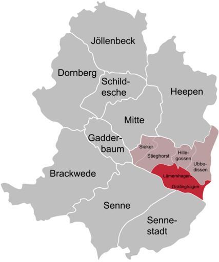| Keywords: Stadtteile Bielefeld - Lämershagen-Gräfinghagen.svg Bielefelder Stadtbezirke Stieghorst - Lämershagen-Gräfinghagen http //bielefeld-blog de/wp-content/stadtteile jpg 2010-03-10 own Released into the public domain by the author PD-release Maps of Bielefeld Stieghorst |