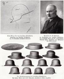 | Keywords: StahlhelmM1916ProfDrSchwerd.jpg en manufacturing process first german steelhelmet Model 1916 first sketch around 1915 and portrait from Prof Dr Friedrich Schwerd de Herstellungsprozess des ersten deutschen Stahlhelms Modell 1916 erster Entwurf um 1915 und Porträt von Professor Dr Friedrich Schwerd Ehrenbuch des deutschen Heeres Major a D F W Deiß Weller Verlag/Berlin 1928 World War I Stahlhelm M16 Historic military equipment of Germany Military history of Germany Deutsches Heer PD-old | ||||