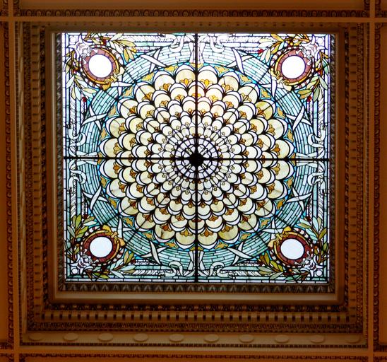Keywords: stained glass window library of congress jefferson building ceiling window glazing colorful big room washington vintage frame rosette flower patterns bay leaves stained glass windows wallpaper background