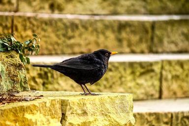 Keywords: stairs blackbird black animal bird feather nature stone songbird structure