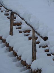 Keywords: stairs wood stairs winter snowy snow ice cold gradually rise