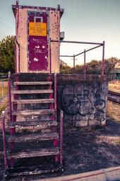 Keywords: stairs wooden guard house urban graffiti contemporary