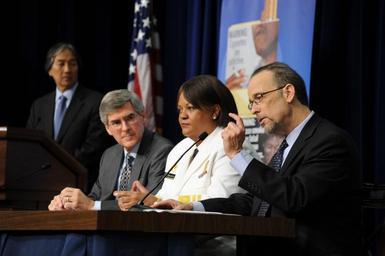 MAKE A MEME View Large Image Event to Announce Graphic Warning Labels.jpg en From Left HHS Assistant Secretary for Health Howard Koh Deputy Secretary Bill Corr Surgeon General Regina Benjamin and FDA Director of the Center for Tobacco Products Dr Lawrence Deyton ...