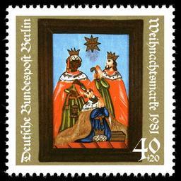 | Keywords: Stamps of Germany (Berlin) 1981, MiNr 658.jpg Stamp of Deutschen Bundespost Berlin from 1981 Christmas 1981 Briefmarke der Deutschen Bundespost Berlin von 1981 Weihnachten 1981 scanned by Nightflyer 2008-05 Froitzheim für die Deutsche Bundespost Berlin copyright information PD-old-100-1923 PD-text Nightflyer 1981-11-12 November 1981 in West Germany Weihnachtsmarke Germany 1981 Deutsche Bundespost Berlin stamps Adoration of the Magi on stamps German stamps review keep | ||||