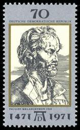 | Keywords: Stamps of Germany (DDR) 1971, MiNr 1674.jpg Information 500 Geburtstag von Albrecht Dürer Bildnis des žPhilipp Melanchthon ; Kupferstich Ausgabepreis 70 Pfennig First Day of Issue / Erstausgabetag 18 Mai 1971 Auflage 1 600 000 Entwurf Naumann Druckverfahren Offsetdruck Michel-Katalog-Nr Ländercode-MiNr 1674 Eigener Scan Bearbeitung Winter 2011 Hochgeladen und Bearbeitet von --Nightflyer <span class signature-talk >talk</span> 21 37 4 February 2011 UTC PD-old-100-1923 1971 stamps of the German Democratic Republic German stamps review keep Engravings by Albrecht Dürer 1520-1528 Philipp Melanchthon on stamps Horst Naumann |