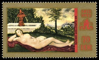 | Keywords: Stamps of Germany (DDR) 1972, MiNr 1772.jpg Information 500 Geburtstag von Lucas Cranach d Ä žRuhende Quellnymphe Ausgabepreis 70 Pfennig First Day of Issue / Erstausgabetag 4 Juli 1972 Auflage 1 900 000 Entwurf Naumann Druckverfahren Rastertiefdruck Michel-Katalog-Nr Ländercode-MiNr 1772 Eigener Scan Bearbeitung Frühjahr 2010 Hochgeladen und Bearbeitet von --Nightflyer <span class signature-talk >talk</span> 20 47 10 September 2010 UTC Gemälde PD-old-100 Rest PD-ineligible German stamps review keep 1972 stamps of the German Democratic Republic Paintings by Lucas Cranach I Ruhende Quellnymphe Paintings on stamps of Germany 1518 paintings Horst Naumann Naiads |