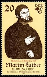 | Keywords: Stamps of Germany (DDR) 1982, MiNr 2755.jpg Briefmarke der DDR 500 Geburtstag von Martin Luther I M Luther als Junker Jörg Gemälde von Lucas Cranach d Ä own scan 1982; scan 2010 Creator Lucas Cranach I copyright information PD-old-100 PD-text Nightflyer <span class signature-talk >talk</span> 21 56 10 September 2010 UTC 1982 stamps of the German Democratic Republic Martin Luther on stamps Anniversaries on stamps of Germany birth German stamps review keep Lucas Cranach d Ä | ||||