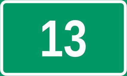 Keywords: Stamvei 13.svg en Diagram of norwegian trunk road sign Own work by uploader based on File Tabliczka E svg BjørnN 2009-02-19 Diagrams of route signs of Norway 013 13 number
