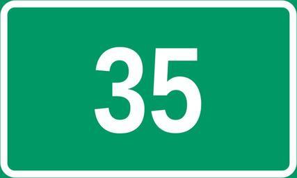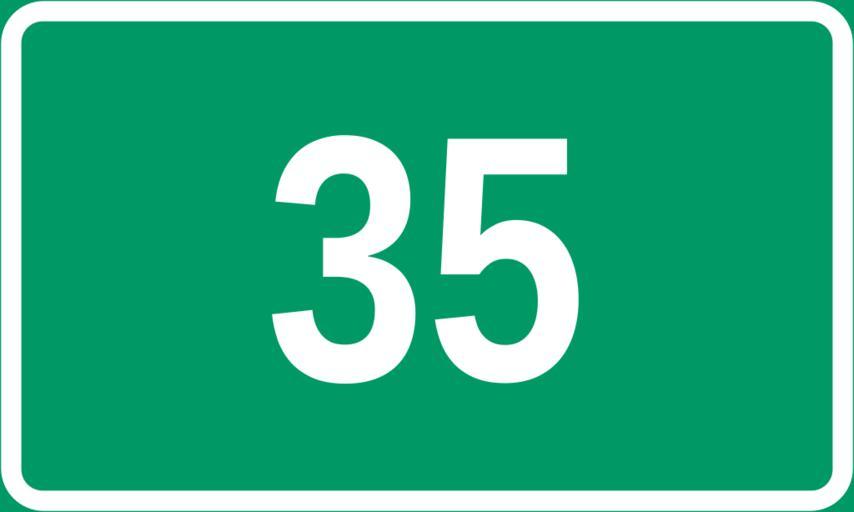 Keywords: Stamvei 35.svg en Diagram of norwegian trunk road sign Own work by uploader based on File Tabliczka E svg BjørnN 2009-02-19 Diagrams of route signs of Norway 035 35 number