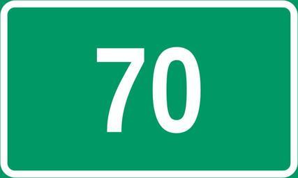 Keywords: Stamvei 70.svg en Diagram of norwegian trunk road sign Own work by uploader based on File Tabliczka E svg BjørnN 2009-02-19 Diagrams of route signs of Norway 070 70 number