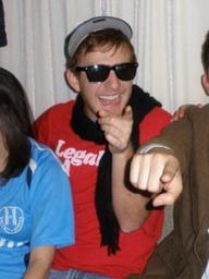 Keywords: StandardScarfWear.jpg en This is a common depiction of how a scarf is worn by young adult males trying to look hip own Degoldenberg 2010-03-01 Smiling men Men with glasses People with headgear