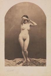 | Keywords: Standing Female Nude.jpg Photograph Creator Nadar en Standing Female Nude 1860 “61 Salted paper print from glass negative cm 20 2 13 3 institution Metropolitan Museum of Art credit line Purchase The Horace W Goldsmith Foundation Gift through Joyce and Robert Menschel 1991 accession number 1991 1174 http //www metmuseum org/art/collection/search/266459 fullscreen Metropolitan Museum of Art Famed for his portraits of writers artists and left-wing politicians Nadar is known to have photographed only three female nudes This one was made at the behest of the painter Jean-LĂ©on GĂ©rĂ´me to assist in the process of painting PhrynĂ© before the Areopagus displayed at the Salon of 1861 GĂ©rĂ´me ™s painting depicts the moment when the famous courtesan PhrynĂ© on trial for impiety is suddenly unveiled by her lawyer; persuaded by PhrynĂ© ™s divine beauty the jurors acquit her Like PhrynĂ© who is said to have modeled for the ancient Greek painter Apelles and other artists of antiquity Nadar ™s model Marie-Christine Leroux 1820 “1863 was widely sought by artists of her time and was the basis for the character Musette in Henri Murger ™s Scènes de la vie de bohème 1860 portrait photographs 1861 portrait photographs Photographs by Nadar Black and white photographs of nude women Phryne |