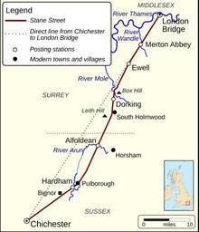 Keywords: Stane Street map.svg en Map of Stane Street a Roman road in Surrey and Sussex own Hogweard 2014-10-29 Stane Street map 2 png Stane Street