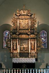 Keywords: Stange kirke altertavle.jpg 85547 Kirkens altertavle fra 1652 Altar piece 1652 Stange church Norway Own 2007-08-06 Jensens Stange kirke Lutheran altars Baroque altars in Norway