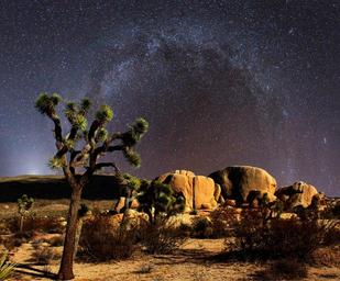 Keywords: star sky milky way night starry sky night sky evening blue star trails cosmos universe desert cactus collage celestial body background radiation africa stone rock mood national park boulders landscape nature