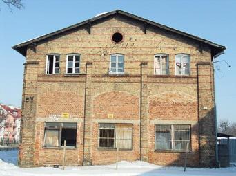 Keywords: Stara zajezdnia tramwajowa - Gdańsk Oliwa.JPG pl Stara pruska zajezdnia tramwajowa w Gdańsku Oliwie - budynek główny fasada zachodnia zamurowane wjazdy dla wagonów own Artur Andrzej 2011-02-28 Cc-zero Old tram depot in Gdańsk Oliwa