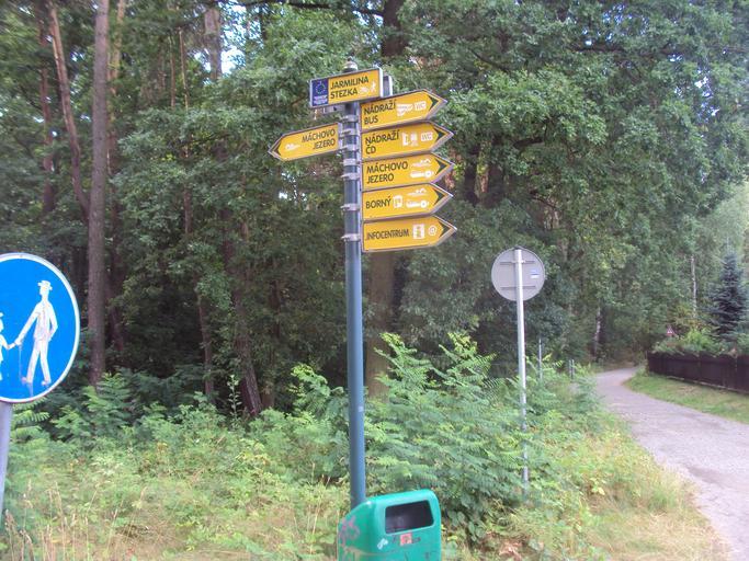 Keywords: Staré Splavy cykloturistů.JPG cs Rozcestník na konci Starých Splavů own Zákupák 2013-07-31 Jarmilina stezka Staré Splavy Hiking and footpath fingerposts in Doksy