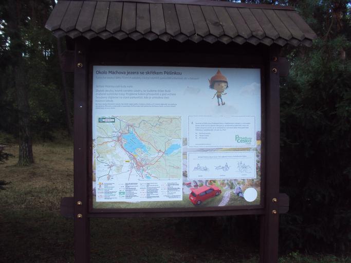 Keywords: Staré Splavy Pešinka 2.JPG cs Tabule dětské trasy ve Starých Splavech own Zákupák 2013-07-31 TS Skřítek Pěšinka
